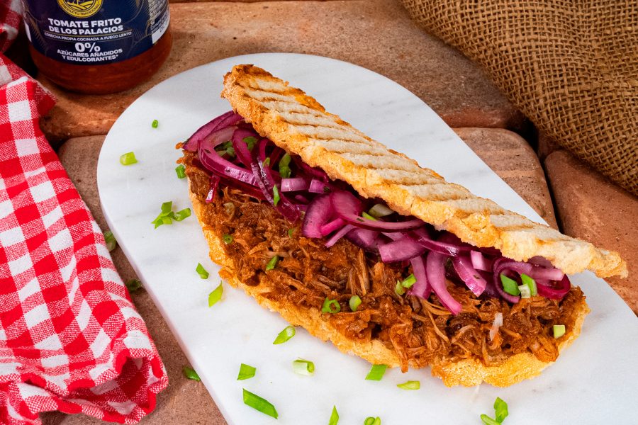Pulled Pork Sandwiches with Sugar-Free Fried Tomato from Tierra Palaciega and Pickled Red Onion